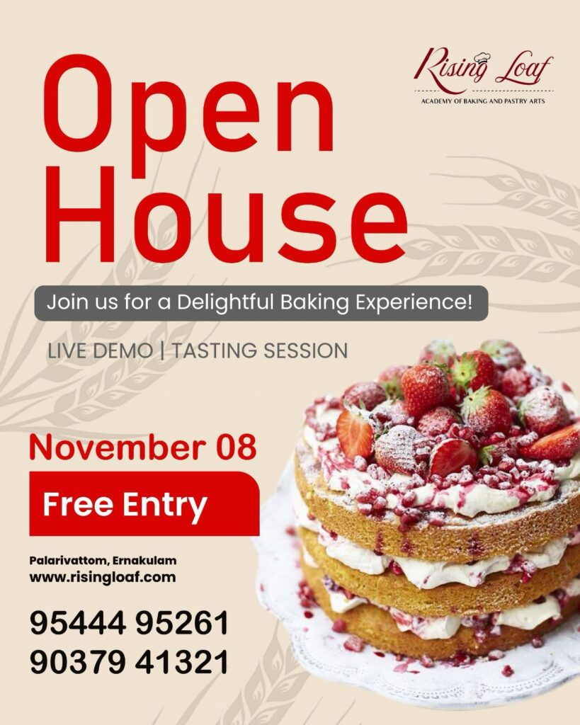 Live Demo - Tasting Session π° Discover the Joy of Baking! π©βπ³β¨ Weβre opening our doors for a special Open House at Rising Loaf β Academy of Baking and Pastry Arts! Join us on November 8 for a Free Entry event packed with: Live Baking Demos Tasting Sessions Meet our expert pastry chefs and explore the world of creative baking!