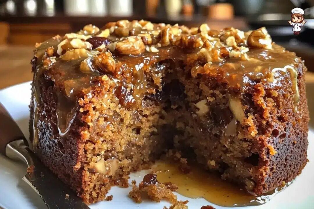 -Pour into loaf tin and garnish with chopped nuts and dates.